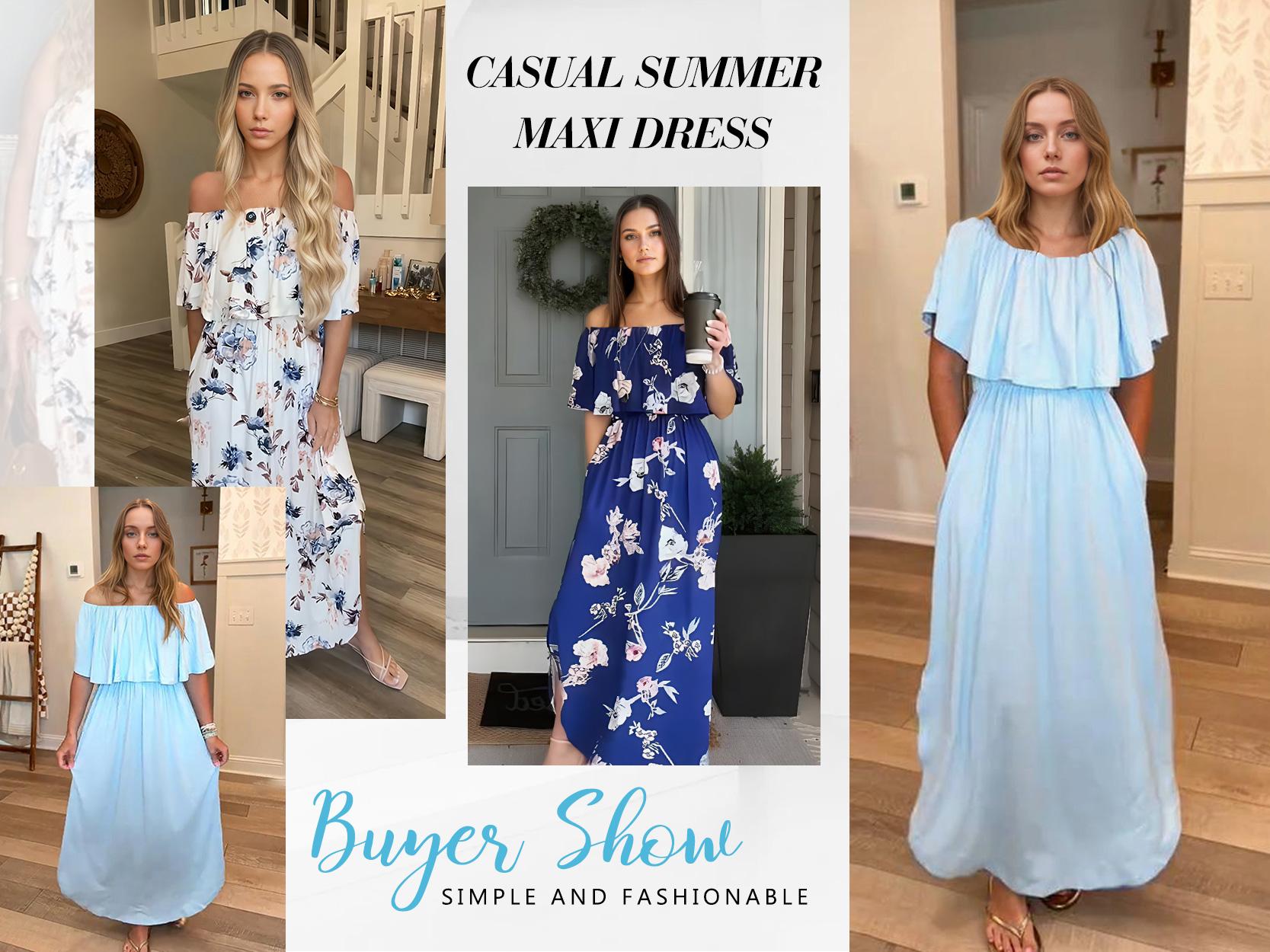 Design: The off-the-shoulder cut is perfectly balanced—neither too tight nor too loose. The neckline highlights your alluring collarbones while the ruffled sleeves cleverly flatter the upper arms. This maxi dress offers versatile styling options; it can be worn as an off-the-shoulder dress or as a standard short-sleeve dress.