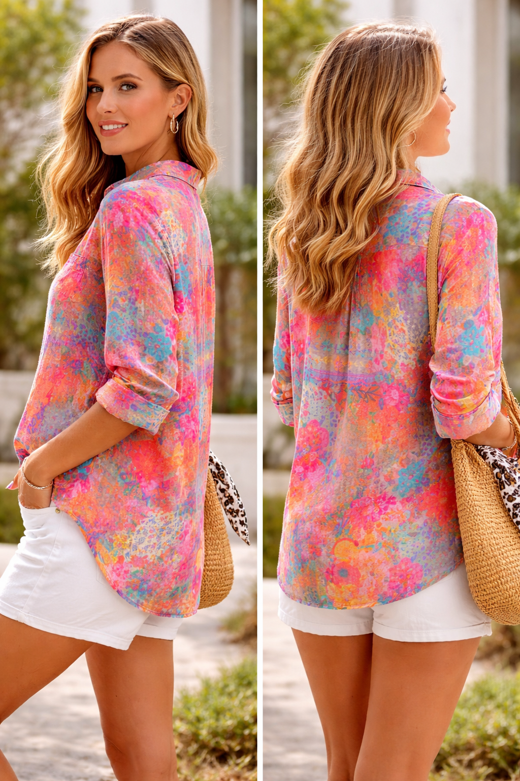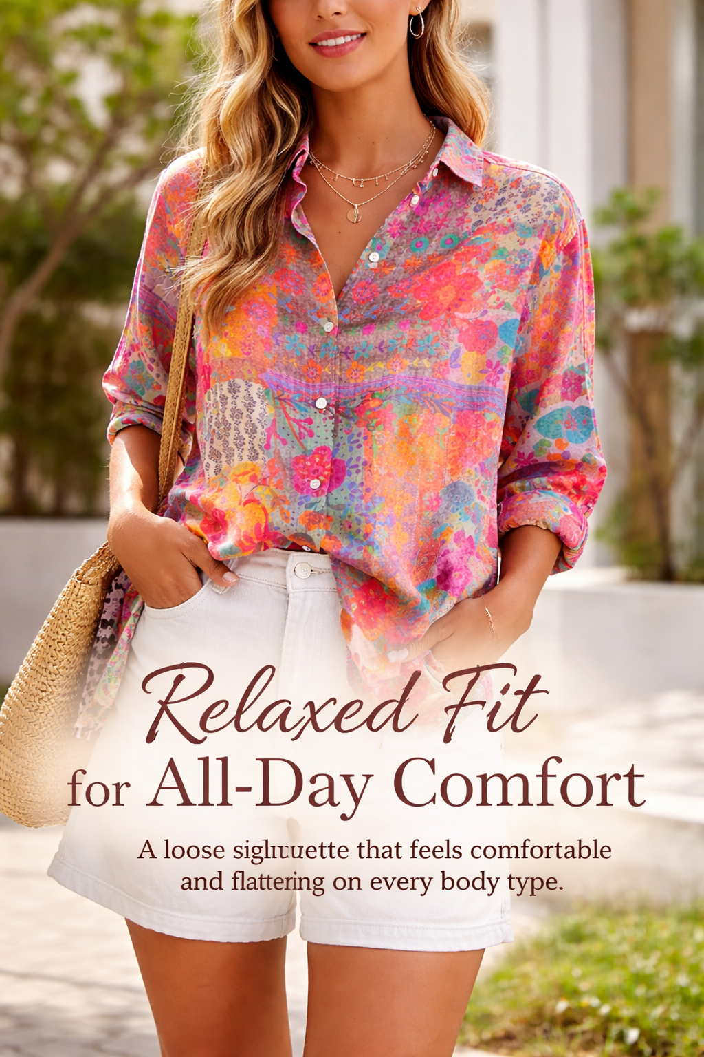 This floral button-down shirt is designed to simplify your outfit choices — whether you're running errands or enjoying a weekend stroll, it fits your lifestyle.